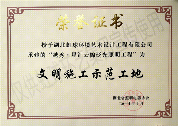 “文明施工示范工地”荣誉证书